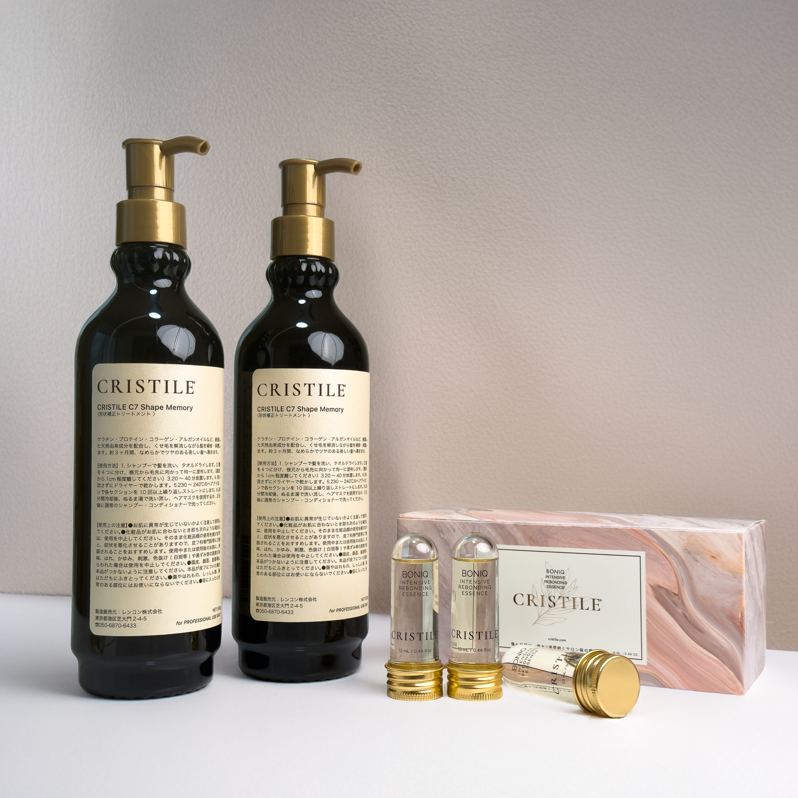 サロンの即戦力となるC7(2本)と、顧客満足度と店販を加速させるBONIQ(1箱)をパッケージ。クリスタイルで成功するための全てが揃う、初回導入サロン様限定の特別セットです。